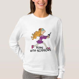 Zazzle shirt from Dooni Designs: runs with scissors girlCheck out this cool shirt I found at Zazzle.com. Get a laugh with this funny girl runs with scissors shirt!Visit doonidesigns's storeJoin doonidesigns's fan club |